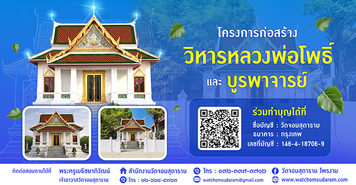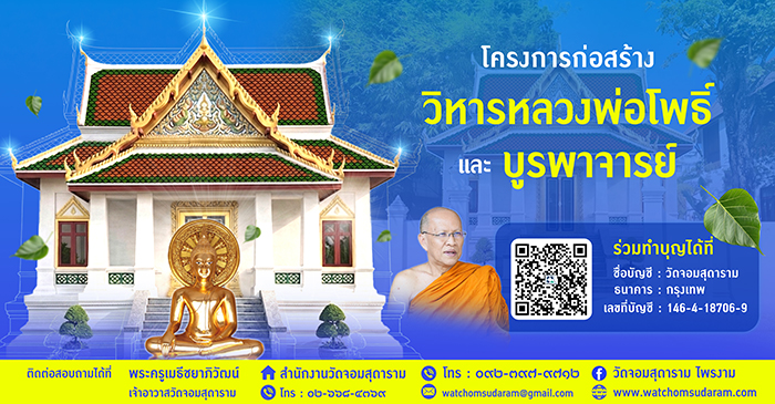 ศาสนวัตถุ ประวัติ ภาพจิตกรรม โครงการบวชชีพราหมณ์ โครงการบวชชีพราหมณ์คือ การบวชของผู้หญิง ที่ต้องการ เข้าศึกษาพระธรรมคำสอนทางศาสนา ของพระพุทธเจ้าโดยมีความตั้งใจรักษาศีลปฏิบัติธรรม และต้องอยู่ที่วัด เช่นเดียวกับแม่ชี การบวชชีพราหมณ์นั้น ไม่จำเป็นต้องปลงผมออกหรือโกนคิ้วอย่างแม่ชีก็ได้ แต่การบวชชีพราหมณ์ต้องเริ่มจากการรักษาศีล 8 อ่านรายละเอียด บรรพชา-อุปสมบท กุลบุตรผู้มีความประสงค์ขอบรรพชาอุปสมบท ที่วัดจอมสุดาราม (ไพรงาม) ติดต่อได้ที่ เจ้าอาวาสวัดจอมสุดาราม หรือผู้ช่วยเจ้าอาวาสโดยตรง ก่อนที่จะได้รับฟังการชี้แจงรายระเอียดจากท่านเจ้าอาวาส และผู้ช่วยเจ้าอาวาส ให้เป็นไปเพื่อความถูกต้องตามลำดับ ตามหลักพระธรรมวินัย อ่านรายละเอียด วัดจอมสุดาราม (ไพรงาม) สามารถติดต่อโดยตรงได้ที่ สำนักงานวัดจอมสุดาราม ๑๕๑๖ ถนนนครไชยศรี แขวงถนนนครไชยศรี เขตดุสิต กรุงเทพมหานคร ๑๐๓๐๐ โทร.๐๒๖-๖๘๔-๓๖๙ หรือ ๐๙๒-๓๙๗-๙๗๑๒ อีเมล : Watchomsudaram@gmail.com